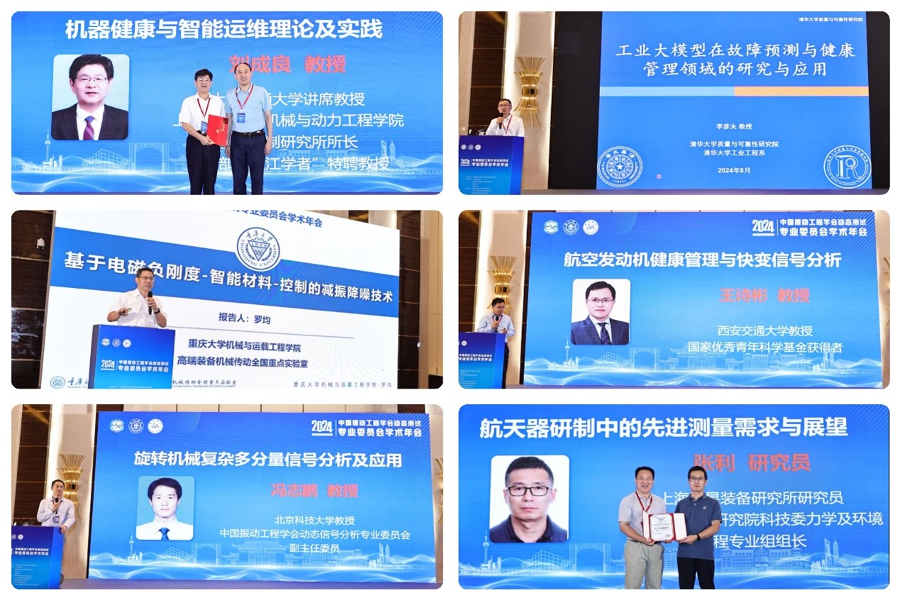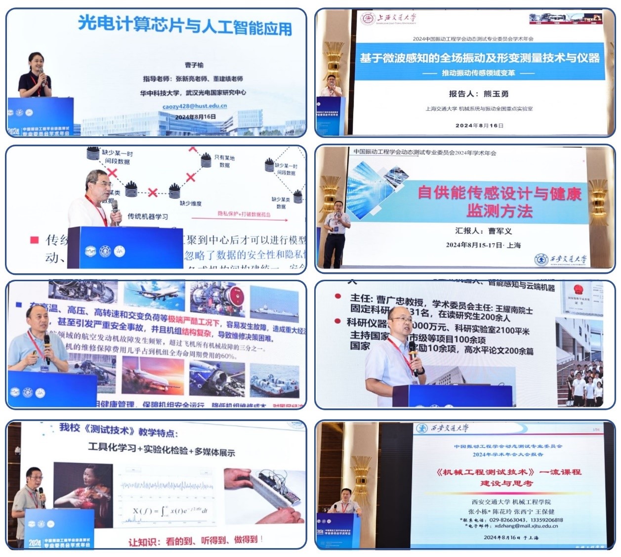 报告交流环节包括14个主会场学术报告和60个分会场学术报告。365英国上市公司官网刘成良教授作《机器健康与智能运维理论及实践》、清华大学李彦夫教授作《工业大模型在 PHM 领域的研究与应用》、重庆大学罗均教授作《基于电磁负刚度-智能材料-控制的减振降噪技术》、西安交通大学王诗彬教授作《航空发动机健康管理与快变信号分析》、北京科技大学冯志鹏教授作《旋转机械复杂多分量信号分析及应用》、上海卫星装备研究所张利研究员作《航天器研制中的先进测量需求与展望》、华中科技大学博士生曹子榆作《光电计算芯片与人工智能应用》、365英国上市公司官网熊玉勇副教授作《基于微波感知的全场振动及形变测量技术与仪器》、南昌航空大学李志农教授作《面向联邦学习故障诊断模型的思考》、西安交通大学曹军义教授作《自供能传感设计与健康监测方法》、重庆大学汤宝平教授作《大型旋转机组健康管理系统软件与图形化编程云平台》、深圳大学曹广忠教授作《磁悬浮技术在半导体装备中的应用》、华中科技大学何岭松教授作《Python 在测试技术实践教学中的应用和软件工具开发》、西安交通大学张小栋教授作《机械工程测试技术一流课程建设与思考》大会主题报告。报告内容反映了相关学科领域的前沿科研和教学的未来发展方向,引起了与会代表老师的热烈反响和积极讨论。