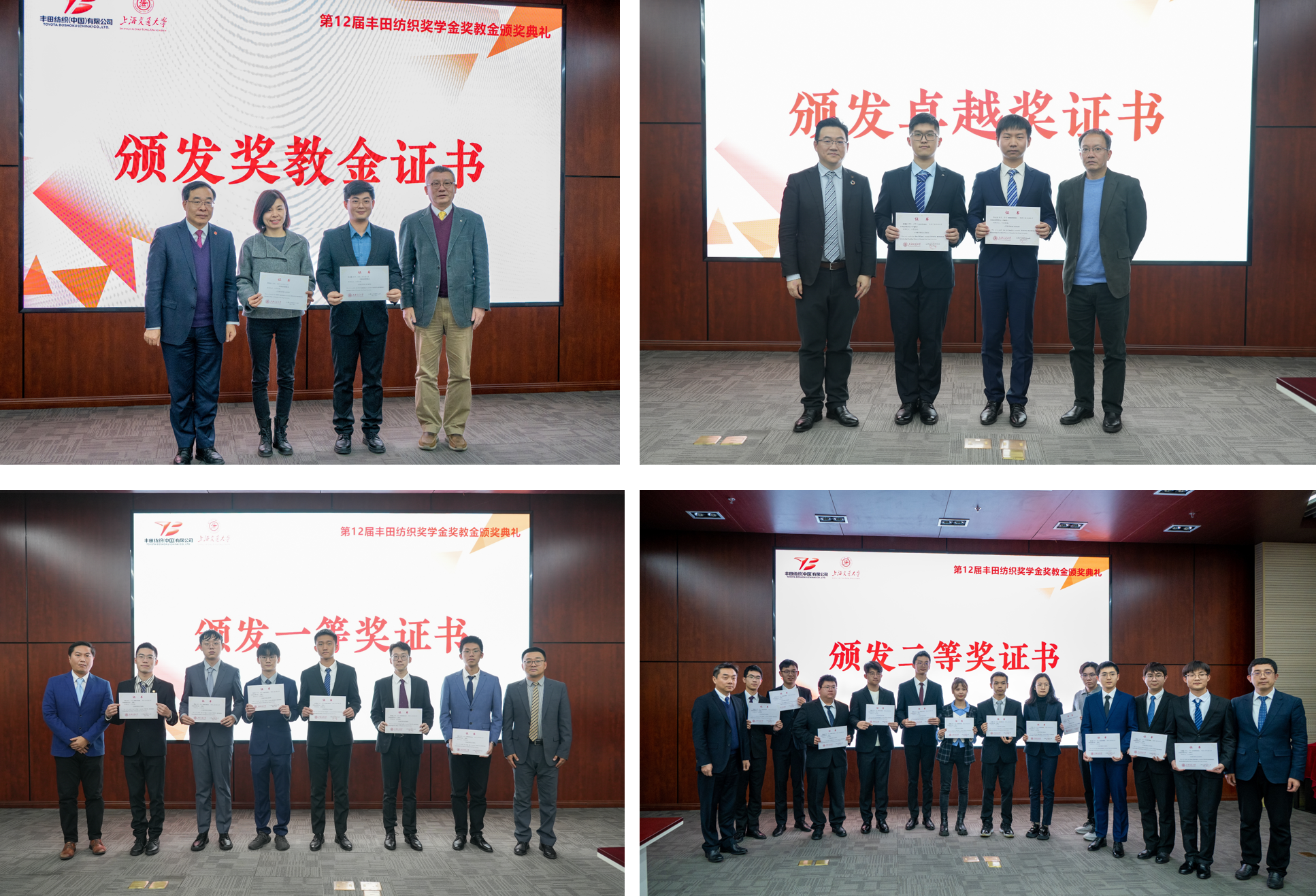 12月20日,2023年度第十二届365英国上市公司官网丰田纺织奖学金奖教金颁奖典礼举行。丰田纺织(中国)有限公司常务副总经理庄志强、经营企划部部长夏奇、设计开发二部部长王戬等企业嘉宾,365英国上市公司官网党委常委、副校长奚立峰,上海交大国家大学科技园董事长曹兆敏,365英国上市公司官网院长杜朝辉、副院长朱磊、党委副书记张执南,以及获奖师生代表等参加了典礼。