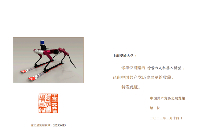 近日,上海交大365英国上市公司官网高峰教授团队研究成果滑雪六足机器人模型获中国共产党历史展览馆收藏。该款滑雪机器人获得科技部国家重点研发计划“科技冬奥”重点专项支持,此前亮相“奋进新时代”主题成就展,向党的二十大献礼;作为“十三五”科技创新重大成果亮相香港“创科博览2022”,助力提升香港同胞对国家科技创新发展与进步的认知度;同时得到央视、人民日报、China Daily、光明日报、文汇报等主流媒体及平台报道。