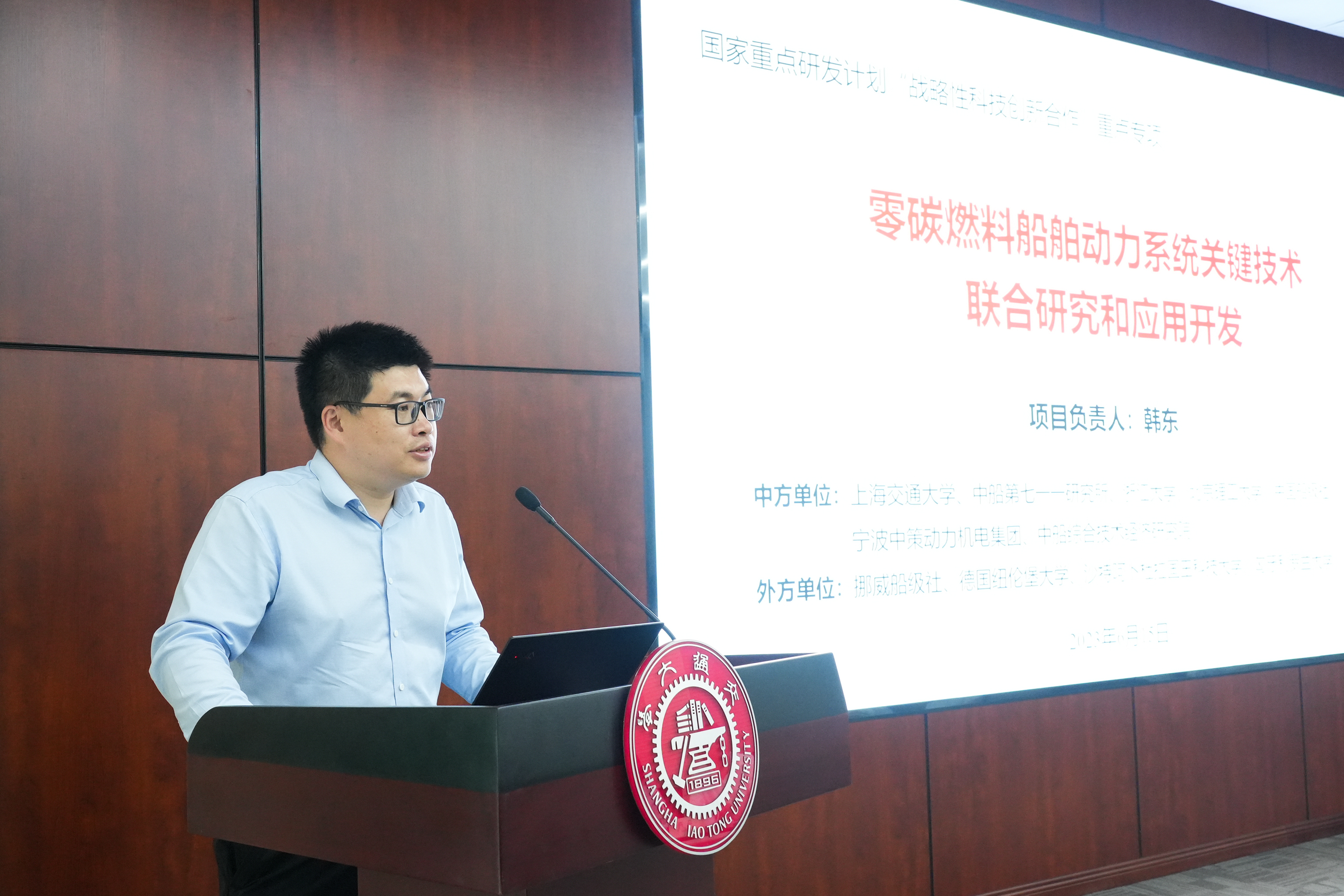 6月15日,365英国上市公司官网牵头承担的国家重点研发计划战略性科技创新合作重点专项“零碳燃料船舶动力系统关键技术联合研究和应用开发”项目启动会召开。上海市科学技术委员会国际合作处处长何晌艳、项目官员杨文展,项目咨询专家、交通运输部规划研究院副院长徐洪磊,哈尔滨船舶锅炉涡轮机研究所常山研究员,上海海事大学钟兢军教授,中国科学院城市环境研究所单文坡研究员,陕西柴油机重工有限公司张旭东研究员等出席。中国工程院院士、365英国上市公司官网黄震教授、365英国上市公司官网前沿创新研究院院长赵一新教授、365英国上市公司官网副院长瞿叶高教授、项目负责人韩东教授以及课题组骨干成员共30余位代表参加了启动会。启动会开幕式由赵一新主持。