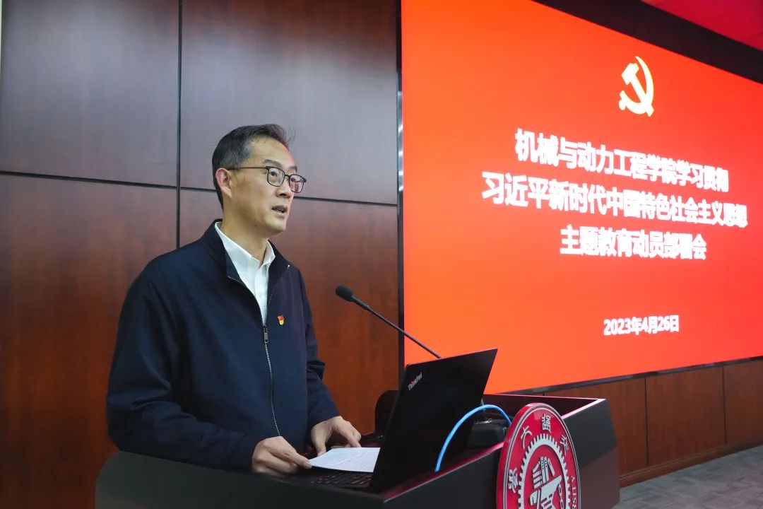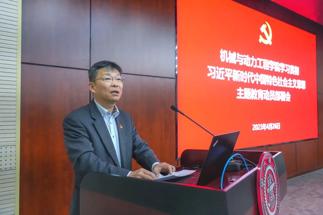学院党委书记林立涛作动员讲话,指出开展主题教育是党中央为全面贯彻党的二十大精神、动员全党同志为完成党的中心任务而团结奋斗所作的重大部署,是深入推进新时代党的建设新的伟大工程的重大部署,全院师生党员要按照学校的统一部署和要求,扎实推进,走深走实,推进学院“双一流”建设,开创事业发展新局面。他提出三点要求:提高政治站位,全面深刻把握开展主题教育的重大意义和目标要求;严格落实要求,全面推进学院各项事业发展;加强组织领导,全力营造浓厚的宣传舆论氛围。他强调学院领导班子和全体师生党员要原原本本学习领会中央精神,认真对照学校、学院实施方案和主题教育工作清单,开展好“理论武装大学习”、“责任使命大调研”、“争创一流大实践”、“检视整改大提升”、“教育成果大转化”等工作,以理论学习为基石,学深悟透强本领;以调查研究为支撑,推动发展创一流;以检视整改为抓手,建章立制提质效。他表示开展学习贯彻习近平新时代中国特色社会主义思想主题教育是学院当前和今后一个时期的重大政治任务,全体师生党员要以高度的政治自觉、饱满的政治热情、严肃的政治态度,在学校指导组的指导下,紧紧围绕主题教育总要求、目标任务和工作安排,有序扎实做好每一项内容,把主题教育成效转化为推进学院改革发展的强大动力,确保主题教育取得实实在在的成效。