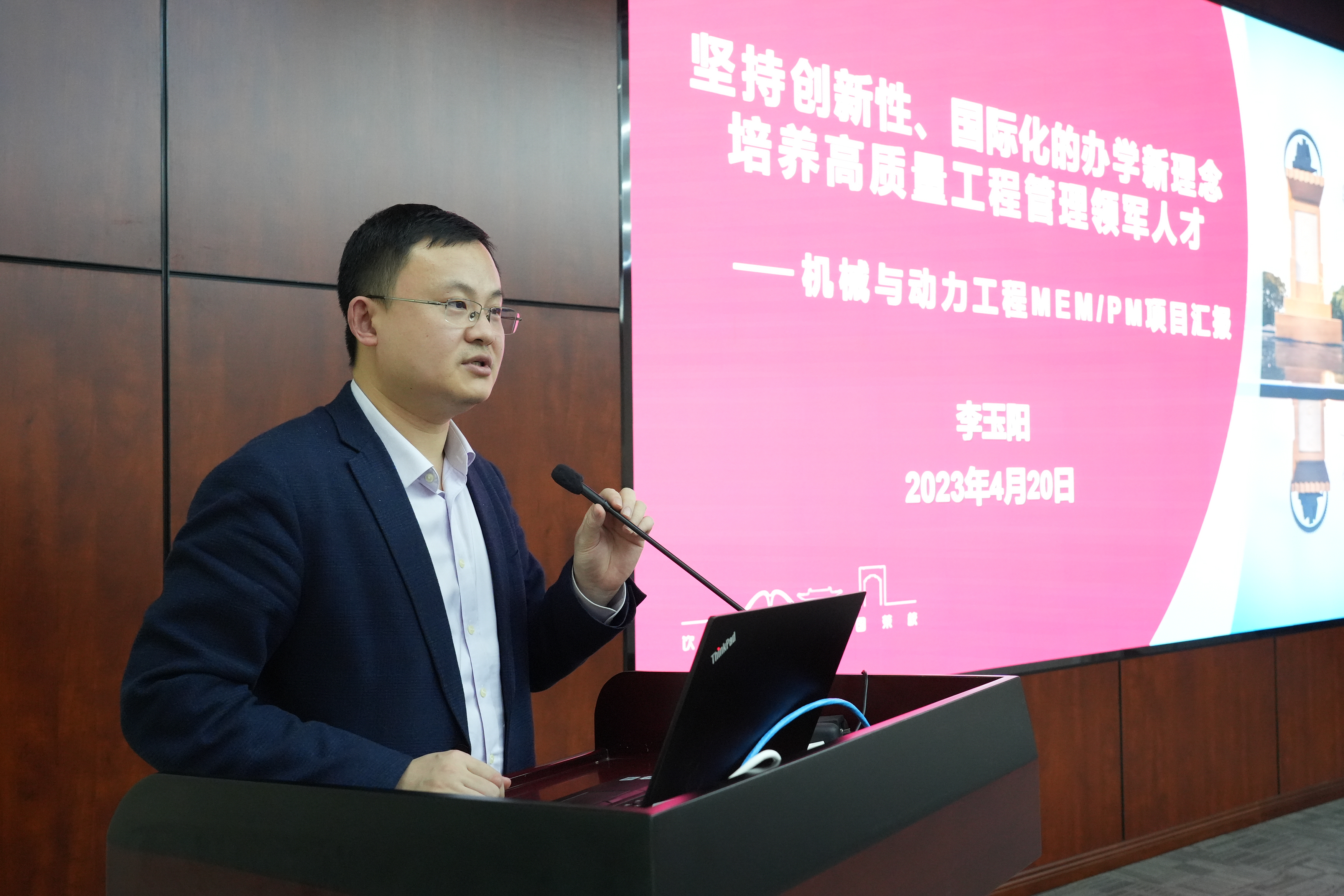 李玉阳围绕课程体系、论文质量、实践教学等,详细介绍了学院MEM项目在坚持创新性、国际化办学的新理念,以及培养高质量工程管理领军人才方面进行的探索,表示今后将不断完善课程体系建设,提升培养质量,为企业和社会输送高质量工程管理人才。