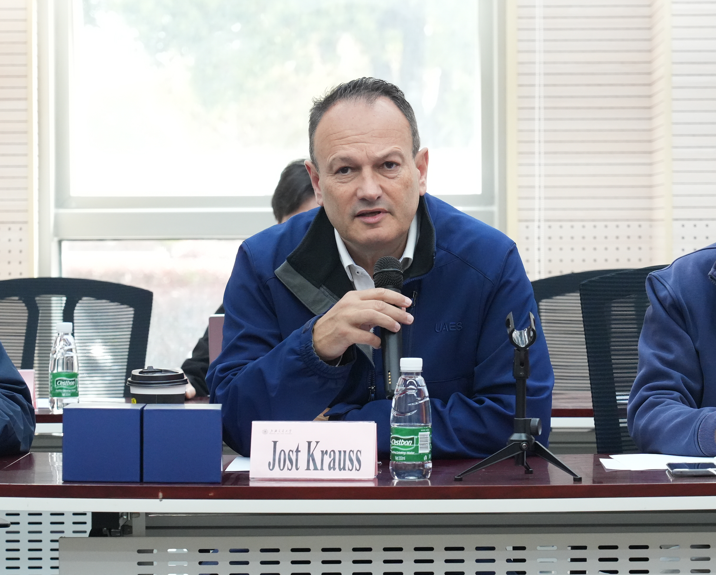 Jost Krauss表示学生们的成果和汇报令人印象深刻,研究内容对于企业的研究具有启发作用,希望双方拓宽合作模式,加强产学研协同育人,实现优势互补、互惠共赢。