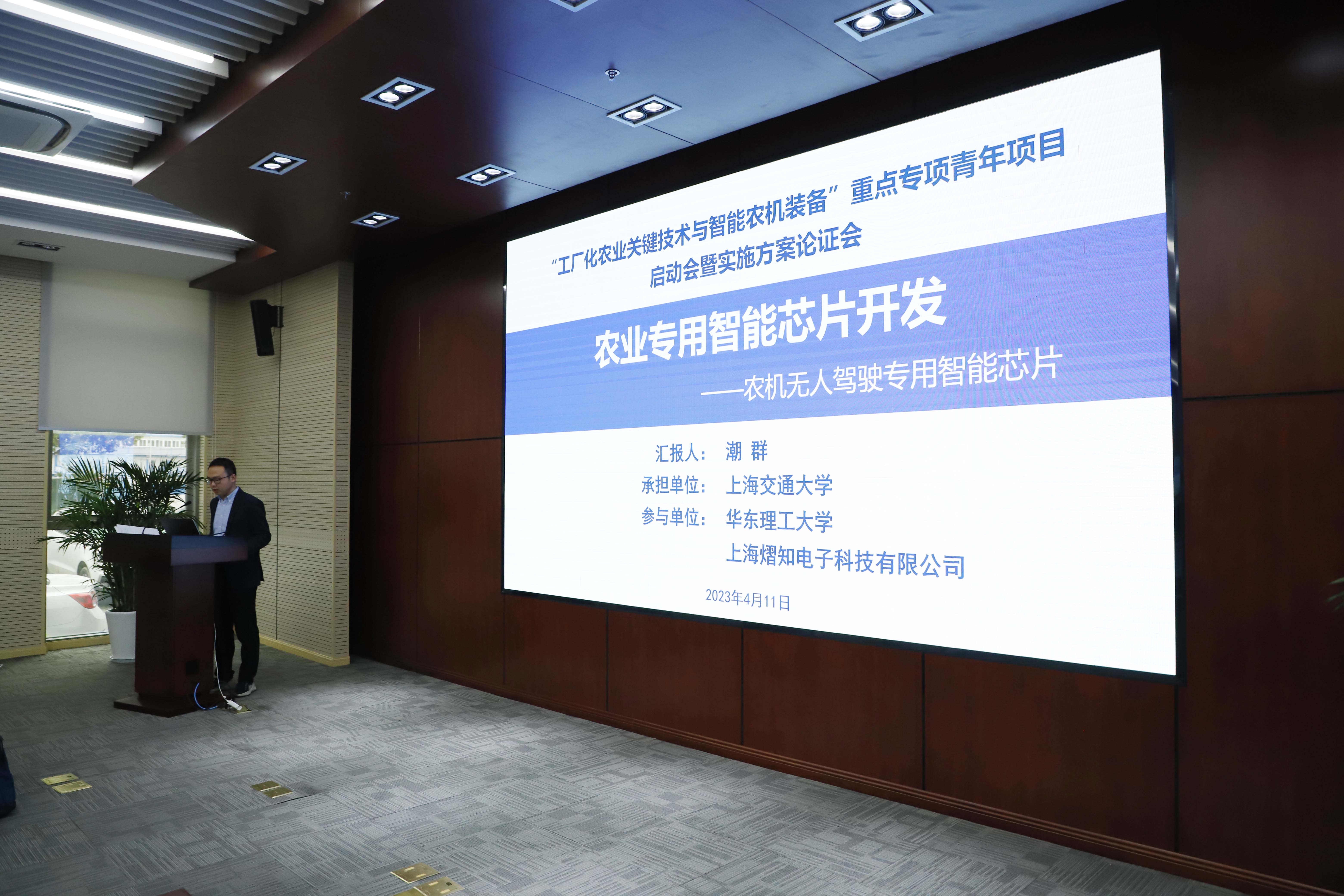 赵一新致欢迎辞,介绍了上海交大在相关研究领域的科研基础,表示学校将积极做好与项目实施有关的协助与推动工作。赵春江强调了智能农机装备未来发展趋势及开发农机专用智能芯片的重要性,分析了“十四五”国家重点研发计划在农机专用智能芯片方向的整体规划布局。胡小鹿介绍了本次专项的总体情况,阐述了重点专项管理思路、要求和注意事项。