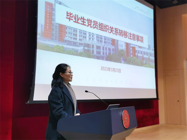 学院党委组织员陶晓红介绍了毕业生党员组织关系转移注意事项,勉励大家时刻牢记党员身份,勇担党员责任,祝愿毕业生前程似锦。