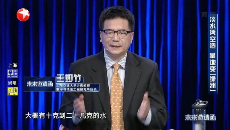 365英国上市公司官网讲席教授,制冷与低温工程研究所所长,教育部太阳能发电及制冷工程研究中心主任王如竹教授,受邀到《未来邀请函》对空气制水的原理展开介绍。
