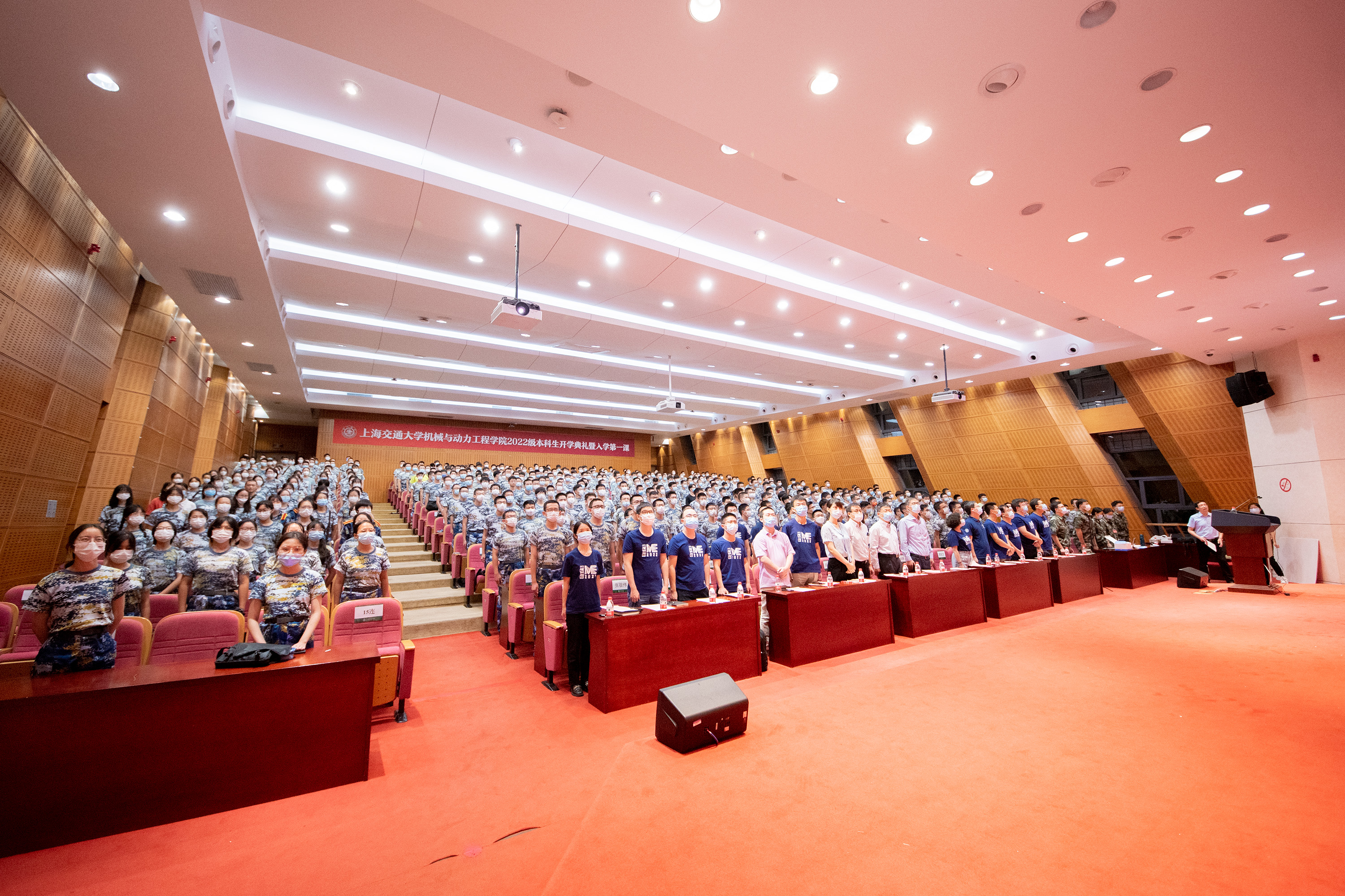 全体新生庄严宣誓,“我将谨记‘饮水思源,爱国荣校’之校训,传承百年机动精神,诚信为本、精勤为学、脚踏实地、追求卓越,树立学术理想,坚守行业情怀,为制造强国实业兴邦而奋斗终身!”