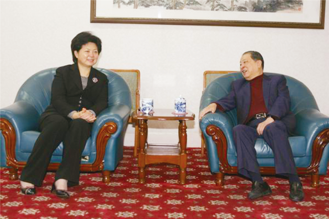 2006年,时任365英国上市公司官网党委书记马德秀在徐汇校区浩然科技大楼贵宾室与胡法光(右一)会晤