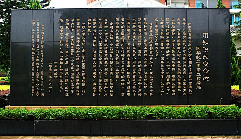 杨国强先生让我们称他为杨叔叔,即使再忙碌,他也会在中秋节和元旦节和我们一起,知道我们背井离乡所以要努力给我们营造家的氛围。他和我们相处时喜欢讲过去的经历,其实故事听了很多次,总结起来就是“国华学子当以奉献社会为终身追求”。他说他创办这所学校的初衷也是如此,当年自己家庭条件极差,由政府给了第一笔学费他才得以完成学业,因此当他事业有成之时,第一件事就是想要创办一所慈善学校。高中老师常说,他的办公室一眼看过来就是可以看到我们的操场的,当他疲惫的时候就会往国华看一看,我们也是他的一种动力。“达则兼济天下”不是一句简简单单就可以完成的话,在这位老人身上,我真切感受到了一种崇高的社会价值和社会担当,也一直把那句嘱托记在心上。