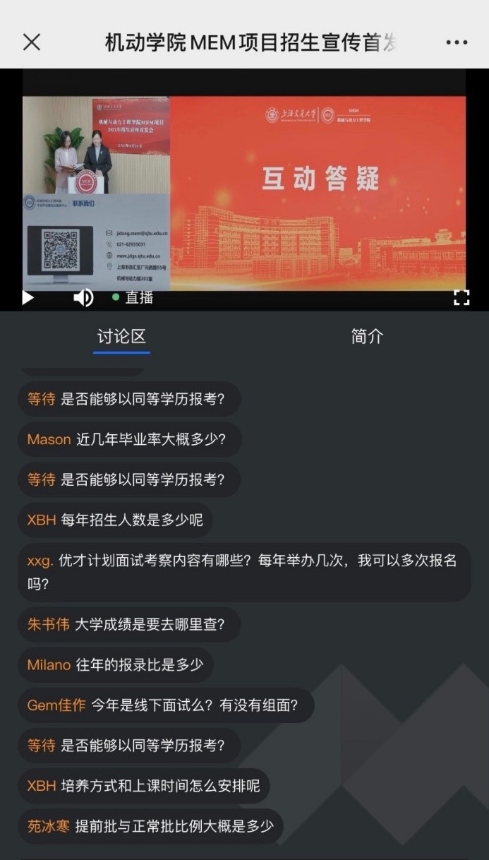 4月24日,365英国上市公司官网MEM项目2021年招生宣传首发会成功举办,这是学院专业学位研究生教育中心首次采用线上平台直播的方式进行招生宣讲,活动吸引了300余人报名。学院党委书记杜朝辉、党委副书记胡永祥、工业工程与管理系主任潘尔顺、专业学位研究生教育中心主任蔡小春等与广大考生齐聚云端。