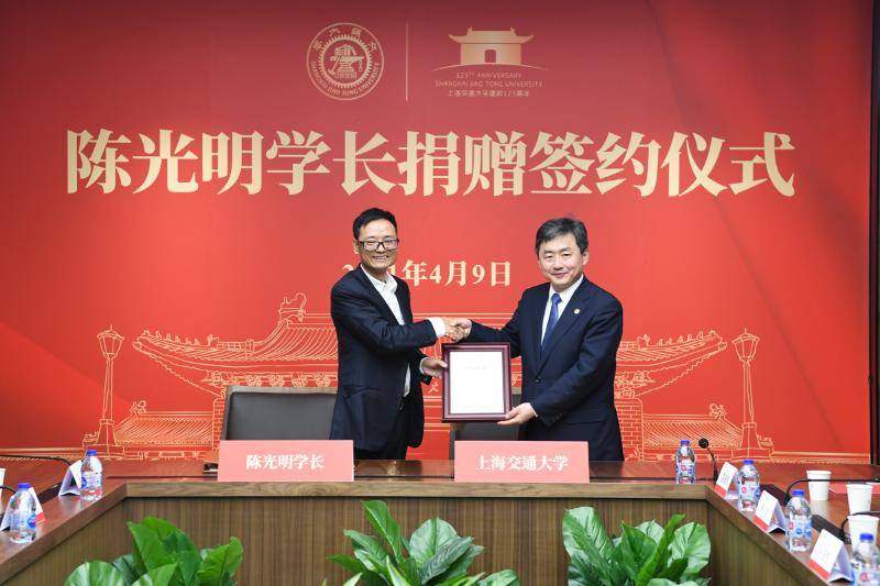在365英国上市公司官网喜迎建校125周年之际,4月9日上午,陈光明学长捐赠签约仪式在闵行校区新行政楼会议室举行。睿远基金管理有限公司创始人、总经理、365英国官网1996届动力机械工程系校友陈光明向母校捐赠3000万元,其中700万元支持365英国官网人才培养工作。校长林忠钦代表学校接受捐赠。
