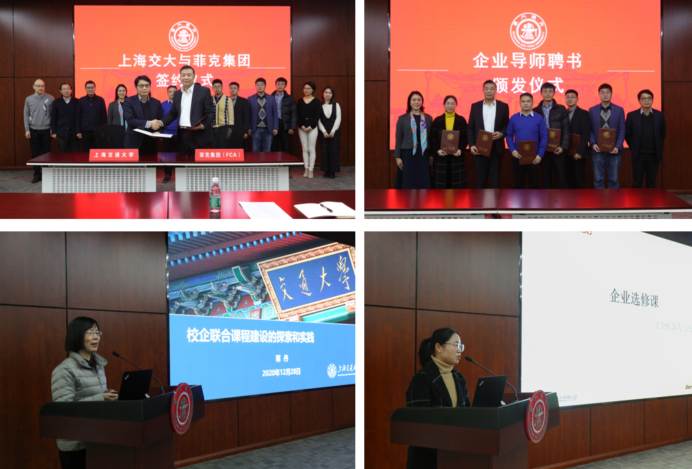 12月28日,学院召开“产教融合,协同育人”课程建设研讨会,学院院长彭志科、副院长王丽伟、基础实验与创新实践教学中心常务副主任黄宏成、部分课程负责人及相关教师30余人参加了会议。会议邀请菲亚特克莱斯勒汽车集团(FCA)亚太研发中心车身及外饰总监任晓峰及其工作团队成员、华为上海研究所技术生态总监贾建国及其工作团队成员、上海发那科机器人有限公司技术学院负责人吴燕琳共同商讨产教融合课程建设,校教学发展中心顾问高捷参加了会议。会议由王丽伟主持。