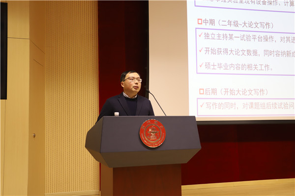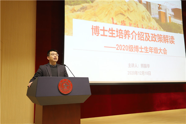 熊振华教授作博士生培养介绍及政策解读。他以详尽的培养数据和丰富的师生案例分析了博士生的培养现状,介绍了学院推进博士生培养质量的举措及成效,希望大家加强科研创新,进一步提高学术成果质量。