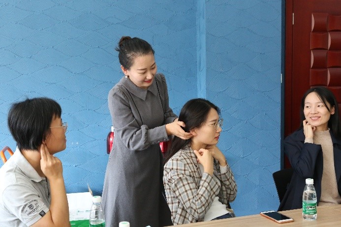 培训师靳瑾讲解了小儿推拿、常见病推拿调理、办公室保健等的常见方法和技巧,大家仔细聆听,现场实操,不仅体验了中医推拿的魅力,也缓解了工作压力和疲劳。