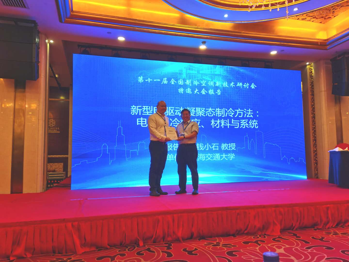 国家自然科学基金委处长纪军,中国科学院院士、香港科技大学赵天寿教授,上海交大机械动力学院副教授钱小石、博士刘华等14位专家学者分别作题为“制冷空调和低温领域国家自然科学基金发展”、“Storing Solar Energy with E-fuels”、“新型电驱动凝聚态制冷方法:电卡制冷效应、材料与系统”、“为绿色制冷插上腾飞的翅膀——《高效绿色制冷行动方案》的思考”等的报告。