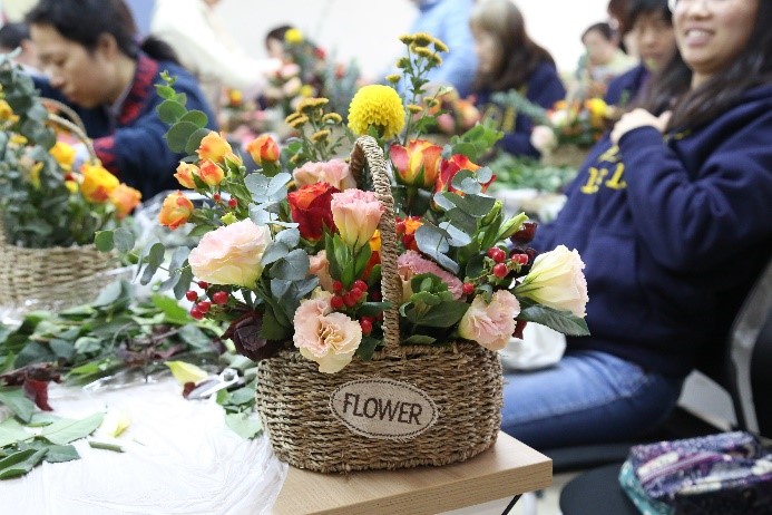 11月25日,365英国上市公司官网工会举办“花样年华”插花活动,吸引了全院80余名教职工参加。大家一同学习插花艺术,品味花海世界的美好生活。