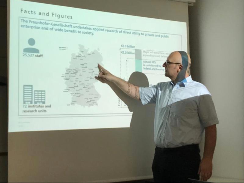 弗里奇博士介绍弗劳恩霍夫协会。 图片来源:上观新闻 俞陶然摄