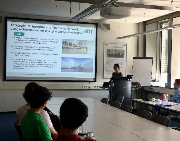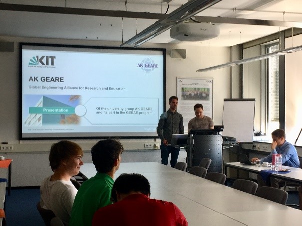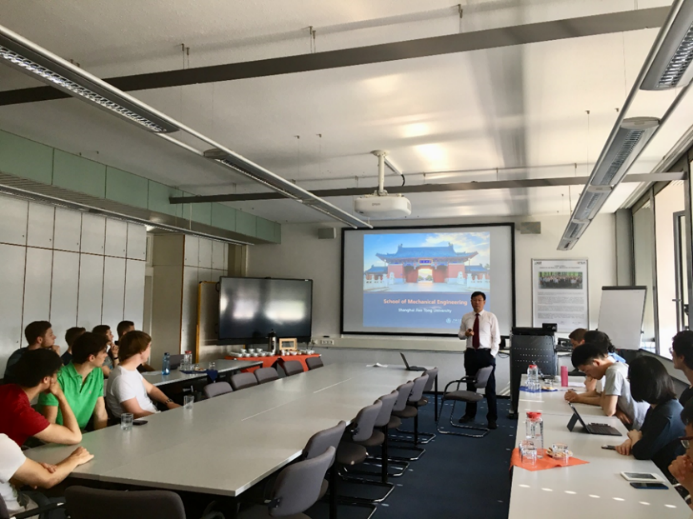 卡尔斯鲁厄理工学院国际处Han Jie介绍了学校在中国以及与交大的战略伙伴关系及合作内容;GEARE项目校友会组织AK GEARE学生代表介绍了组织概况和职能,希望能够帮助参加GEARE项目的学生更好更快地融入到异国的学习和生活环境。