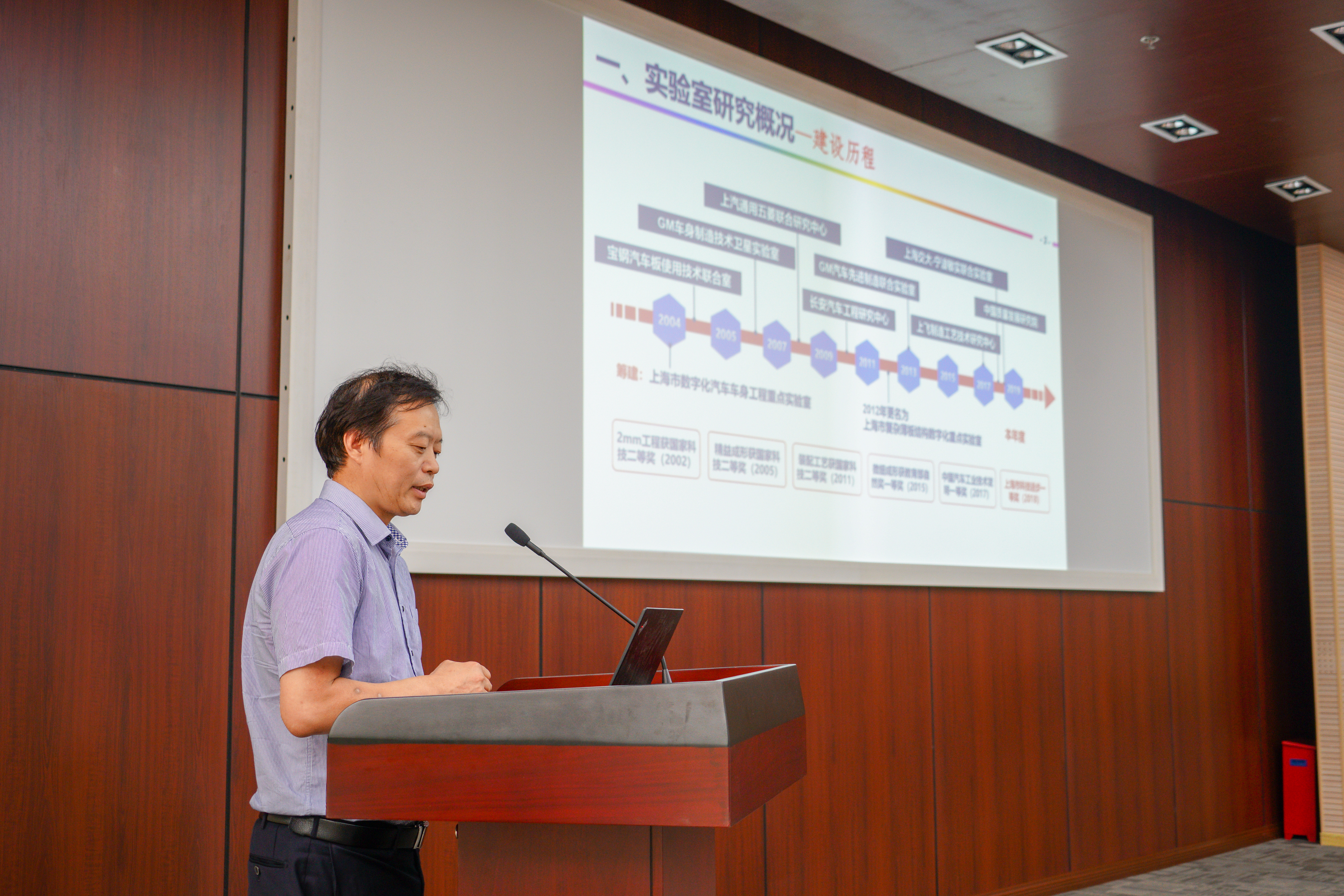 实验室主任来新民做2018年度工作报告。实验室教师李永兵、何霁和陈根良分别作了“低延展性轻合金自冲摩擦铆焊方法”、“先进高强钢板塑性成形的各向异性断裂准则”、“大型复杂薄板结构精确高效装配技术”的学术报告。