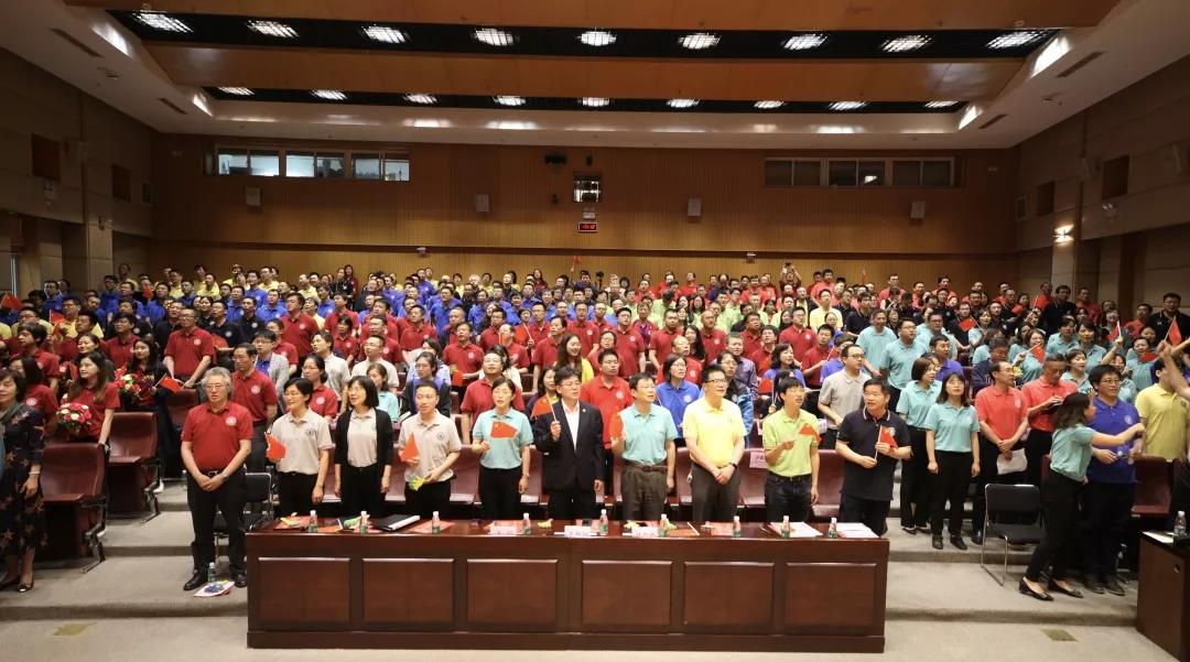 为献礼新中国成立70周年,营造团结奋进、文明和谐的校园文化氛围,5月17日,365英国上市公司官网工会以“弘扬爱国奋斗精神,建功立业新时代”为主题举办《我和我的祖国》红色经典歌会,365英国上市公司官网工会主席于朝阳到会致辞,来自学院各系所、机关等17支队伍共计430余人参加了活动。本次活动中,学院教职工参与率达80%,学院骨干教师、行政领导均带头参赛。