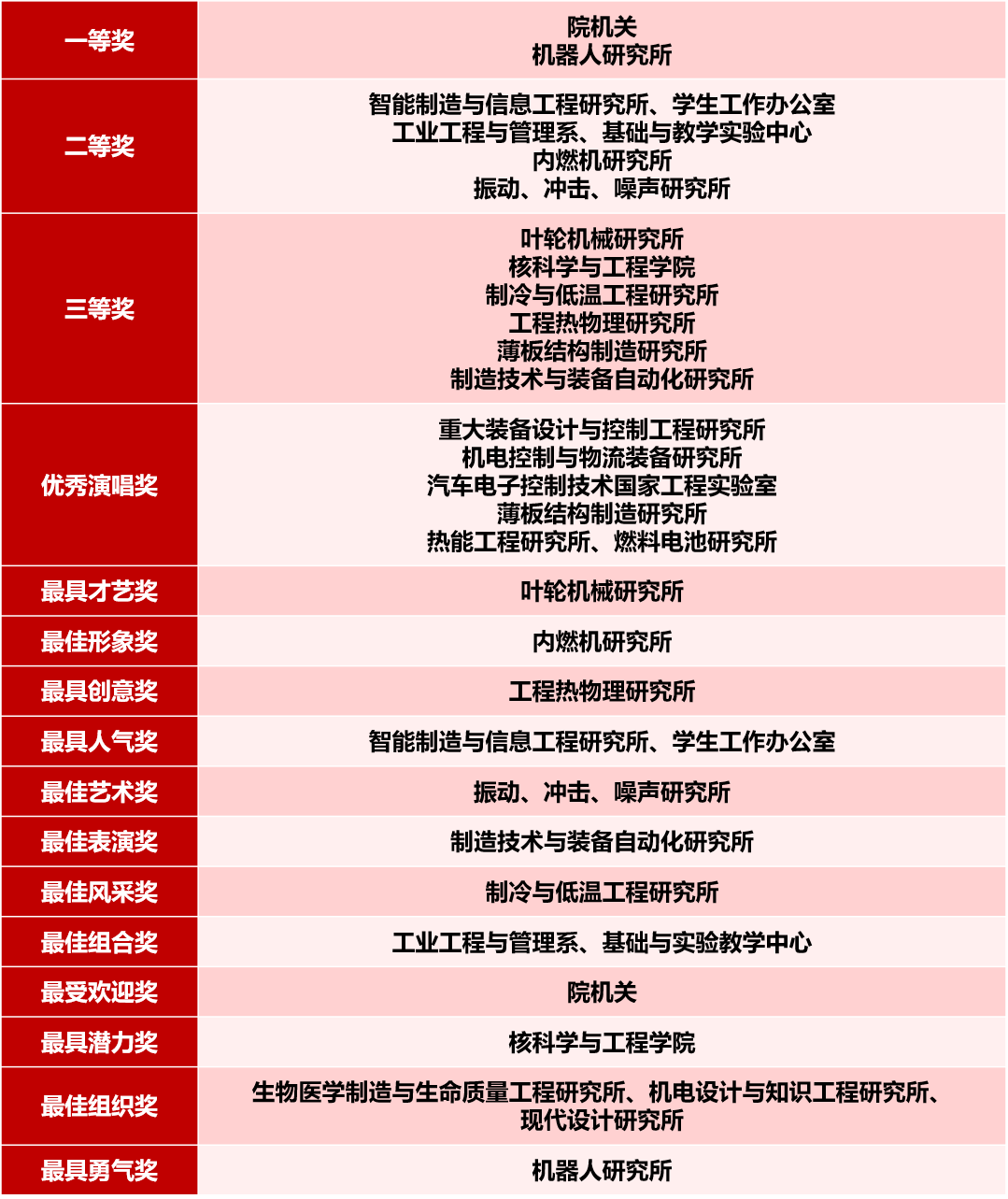 活动在嘹亮的《歌唱祖国》中拉开序幕。一首首脍炙人口、荡气回肠的红歌,融入舞蹈、朗诵等创新形式,展现出党带领人民艰苦奋斗的英雄史诗,抒发了教职工对党和祖国的热爱之情。《游击队之歌》、《保卫黄河》、《万泉河水》等歌曲带领大家重温激情燃烧的峥嵘岁月。《我的祖国》、《我的中国心》、《我和我的祖国》等表达出对祖国的深情眷念。《光荣与梦想》、《走进新时代》、《中国中国 鲜红的太阳永不落》等体现了对祖国伟大复兴的向往与期盼。活动评选出一等奖2名,二等奖4名,三等奖6名,以及最具才艺奖、最佳形象奖、最具创意奖、最具人气奖、最佳艺术奖、最佳表演奖、最佳风采奖、最佳组合奖、最受欢迎奖、最具潜力奖、最佳组织奖、最具勇气奖、优秀演唱奖等。