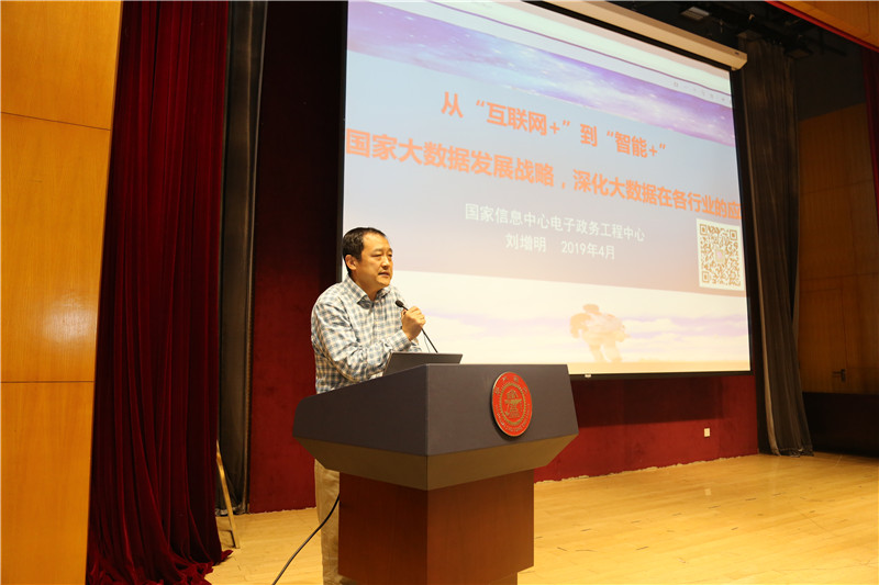 刘增明以“从‘互联网+’到‘智能+’:践行国家大数据战略、深化大数据在各行业的应用”为题,介绍了新时代的思维模式转变需要、大数据带来的新变革,以及政府相关部门在“互联网+”和“智能+”等领域出台的相关文件。