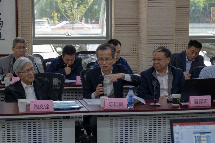 专家组和科技部领导对项目目的、研究内容和课题间的协作等方面进行了探讨并提出建议。科技部专家、中国科学院院士陶文铨就颗粒温度的测定、接触热阻及颗粒光滑性等内容与项目组进行了交流,对项目在机理上的研究提出了更高要求。科技部专家组组长夏德宏教授建议项目组紧密结合宽温域和散料的特点进行总结。陈硕翼指出,项目组的原有技术基础是发展增量的起点,项目的增量是完成终期目标的重点工作。他要求专家组坚持公平公正、诚实守信的职业道德,并对推进项目组建立更富有成效的管理体制提出建议。此外,专家组就推进示范工程提出建议,并和项目组在设备采购、加工工艺、时间节点、团队协作等方面进行了交流和探讨。