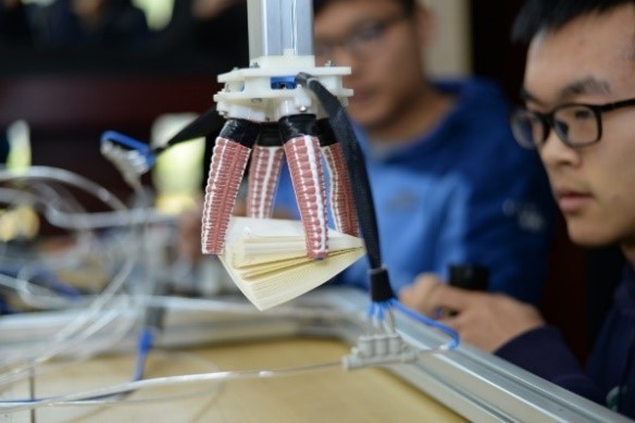 12月16日,大会举行了“软体机器人创新设计”竞赛活动。竞赛分为创意展示和抓取竞赛两种形式,吸引了来自各高校的32支队伍参赛。各参赛队伍通过实物、展板和PPT等形式展示了在软体机器人设计过程中的新理念、新思路和新功能,并从抓手的灵巧性、负载能力以及增强功能等方面进行了评比。经评选,西安交通大学和香港大学荣获创意展示竞赛和抓取竞赛一等奖。