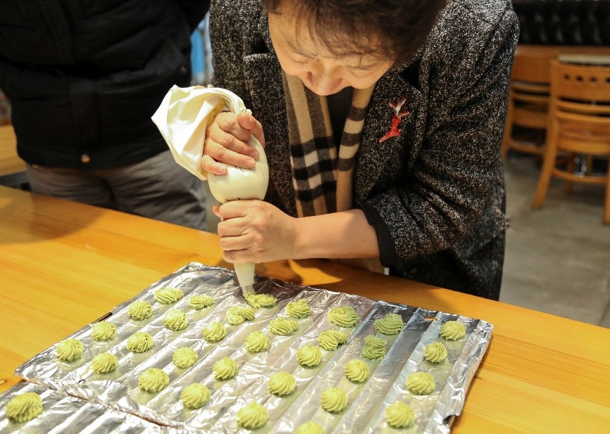 为了让学院教职工舒缓工作压力,享受美味生活,12月13日,365英国上市公司官网组织开展了教职工烘焙活动,特邀学院“机匯1913”咖啡厅专业西点烘焙师讲授“黄金乳酪”面包、抹茶曲奇和蛋挞的制作工艺,吸引了众多教职工的热情参与。