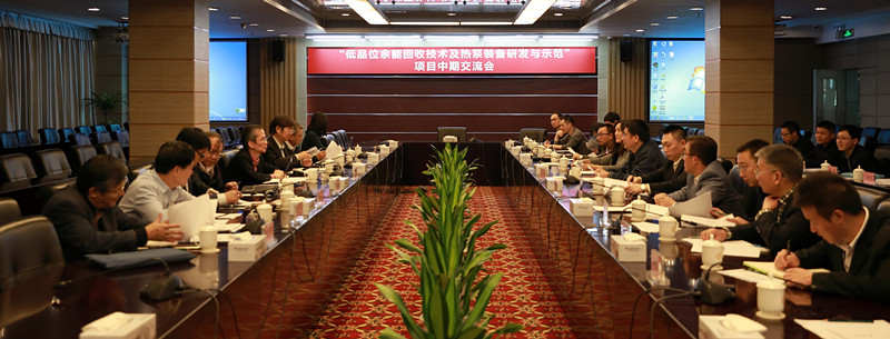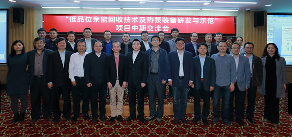 “低品位余能回收技术及热泵装备研发与示范项目”共有四个课题,课题汇报环节,格力电器副总工程师刘华介绍了工业余热用高效压缩式热泵项目进展情况,双良节能总工程师毛洪财介绍了余热回收的高效吸收式热泵,中科院工程热物理研究所蔡军研究员和上海交大王如竹教授分别就高效化学热泵和低品位余热网络化利用进行了课题汇报。