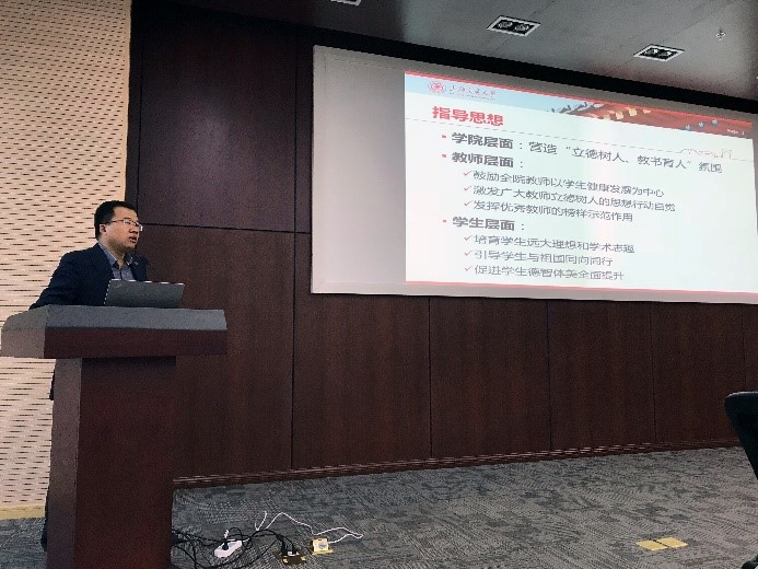 顾希垚结合学院教书育人委员会的工作方案以及学校《关于青年教师参与大学生思想政治工作经历在专业技术职务聘任中认定和应用的实施细则》,从学院、教师、学生三个层面解读了“立德树人、教书育人”的指导思想,介绍了委员会的相关工作职责,重点介绍了学院构建高效合力育人平台的思路,青年教师参与大学生思想政治工作的载体,总结了学院在以往育人工作中涌现出的优秀典型。 顾希垚表示,学院将加大就业引导力度,鼓励学生与祖国同行,到各地区重点行业就业,为国家发展贡献自己的青春力量。