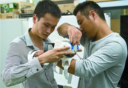 闫维新是国内培养的工学博士,他经常自谦为“土博士”,但“土博士”的抱负可一点也不小。“这东西目前还只是用3D打印出来零件,处在临床调试阶段。等我开了模具生产产品,患者直接租一台回家,在家里就能做康复训练了”。