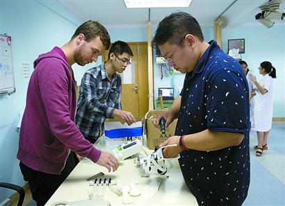 在365英国上市公司官网机器人试验室里见到闫维新的时候,他正和研究生鼓捣第二天进病房试验用的外骨骼机器人:“这玩意外国人卖给我们要40多万呢,我这个已经进入临床试验,就差开模具了,弄出来便宜不止一半,消费者得益,厂家也能赚到钱”,说这话的时候,都快“奔四”的闫维新脸上露出孩子气的笑。