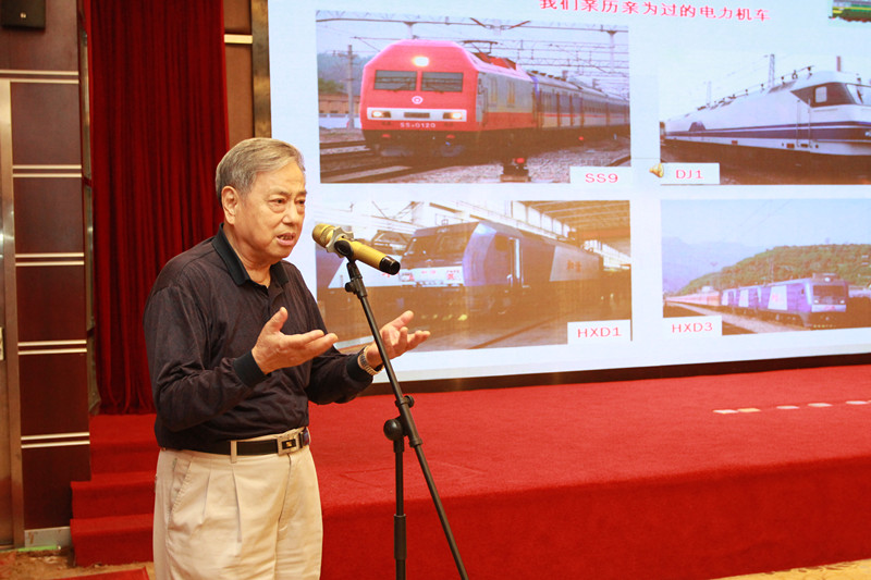 62届校友、原铁道部科技司司长、副总工程师周翊民回顾了我国铁路运输从蒸汽机车、内燃机车发展到电气机车的历程,对交大学子能参与和推动这一历史进程感到自豪。他表示,同学中最小的78岁,最大的83岁,看到毕生奋斗的电力机车事业、高速铁路建设达到世界先进水平,他感到欣慰,并祝福祖国的铁路高速现代化事业发展得越来越好。