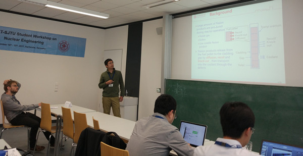 在本次研讨会中,教授讲座与学生报告互相交叉进行。来自SJTU和KIT的教授们的讲座囊括了核工程领域不同方向的热点问题,包括辐射安全、材料腐蚀、热工水力等。在两校学生的汇报交流中,通过细致的介绍和热烈的讨论,各位学生展示了最新的研究成果,并进行了深入的专业交流。