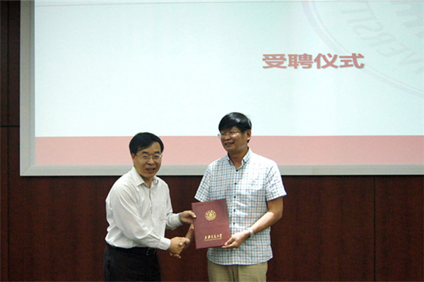 顾汉洋首先介绍了欧阳晓平院士的研究背景和学术成就。奚立峰代表学校致欢迎词。他以欧阳晓平院士的求学奋斗经历为例,希望同学们将事业建立在祖国广阔的土地上,能到祖国最需要人才的地方实现自己的抱负和价值。同时他希望大家珍惜在校的学习时间和学习环境,在最富创造力的年纪勇攀科研高峰,为国家发展做出自己的贡献。随后,奚立峰为欧阳晓平院士颁发了聘书和校徽。