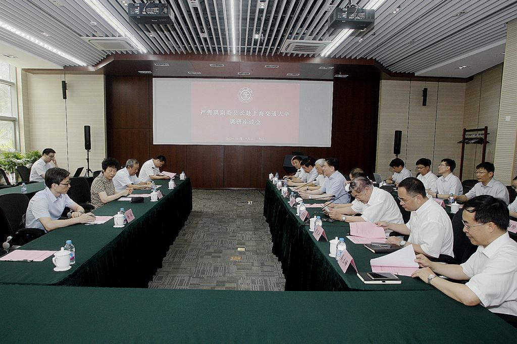 7月29日上午,全国人大常委会副委员长严隽琪、全国人大财政经济委员会副主任邵宁一行到上海交大调研。党委书记姜斯宪,校长、党委副书记林忠钦、副校长吴旦、黄震,校长助理奚立峰,上海振华港机(集团)公司原总裁管彤贤、上海振华重工(集团)股份有限公司总裁黄庆丰等出席调研活动。