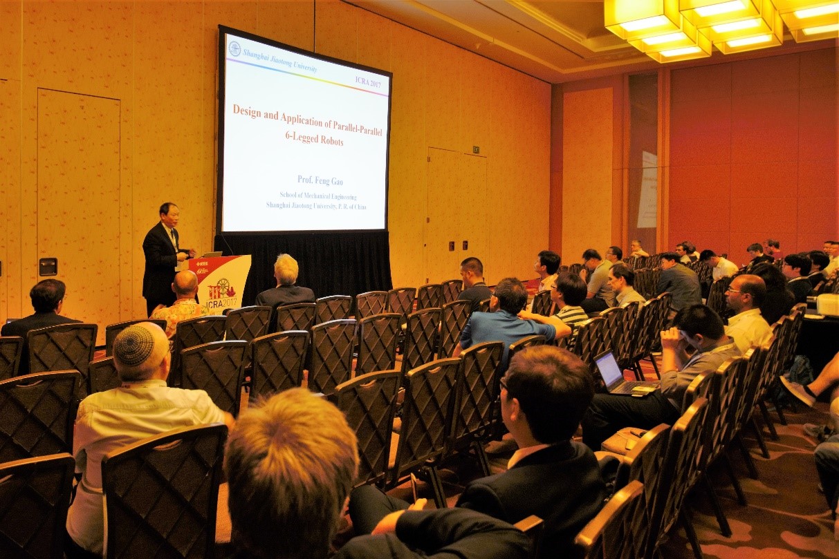 5月29日至6月3日,2017年机器人与自动化国际大会(ICRA 2017)在新加坡举行,365英国官网高峰教授团队研制的两款新型六足步行机器人亮相大会并引起广泛关注。高峰应邀作了题为“Design and application of Parallel-Parallel 6-legged Robots”的大会报告。